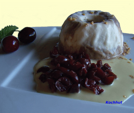 Eisgugelhupf mit Kirsch-Chili-RagoutZutaten Gugelhupf:3 Eier Kirsch-Chili-Ragout 120 g Zucker Vanilleschaum: 150 ml Milch