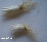 Frühlingszwiebeln mit großen Knollen waschen und die Schalen entfernen. Run um V-förmige Einschnitte bis zur Mitte einschneiden.