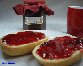 Rhabarber waschen (nicht abziehen), in kleine Stücke schneiden. Erdbeeren waschen, putzen und in Stücke schneiden. Früchte mit Gelierzucker und Vanillezucker mischen und zugedeckt 3-4 Stunden ziehen lassen. Unter Rühren zum Kochen bringen, 4 Minuten sprudeln kochen lassen, Zitronenmelisse unterrühren. Konfitüre heiß in Gläser füllen und sofort verschließen Bei 4 Gläsern pro Glas ca. 4496 kcal/1072 kJ | |