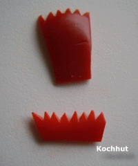 Für den Schwanz, Kamm und den Schnabel brauchen Sie eine rote, grüne oder gelbe Paprikaschote. Für die Augen ein paar schwarze Oliven.