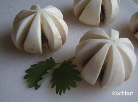 Die Pilze vorsichtig mit einem klammen Tuch säubern oder mit etwas Wasser abspülen. Mit einem Papierhandtuch vorsichtig trocken tupfen. Pilz auf Küchenbrett legen. Mit einem Schälmesser Stiel beschneiden oder entfernen. Das Messer in einem Winkel von 45° halten und von der oberen Mitte des Pilzkopfes aus eine dünne gebogene Rille bis zum Pilzrand schneiden. Pilz drehen. Weitere Rillen, insgesamt 6 bis 8 pro Pilzkopf, in gleichmäßigen Abständen schneiden. Anschließend mit Messerspitze die dreieckförmigen Schnittstücke entfernen.