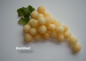 passen zu: Schalentieren und Fisch Schaumspeisen und Fischpasteten und Eistorte oder gefrorenes Mousse mit zu einem Büschel gelegten Melonenkugeln und Blätter verzieren.