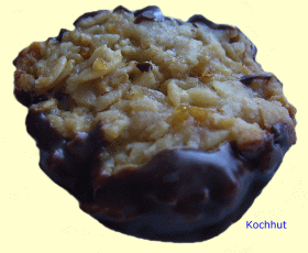Milch und Honig und 100 g der Butter in einen Topf geben und unter Rühren 4-5 Minuten durchkochen lassen. Köllns Kernigen in der restlichen Butter leicht anrösten (ständige umrühren). Das fein gehackte Orangeat mit den angerösteten Köllns Kernigen, den gehackten Mandeln und der geriebenen Zitronenschale unter die Honigmilch rühren. Die Florentinermasse erkalten lassen. Die Arbeitsfläche dünn mit Mehl bestäuben. Den Teig in vier gleichgroße Teile teilen. Jedes Stück auf der bemehlten Arbeitsfläche zu einer 20 cm langen Rolle formen und jede Rolle in 14 Scheiben schneiden. Zwei Backbleche mit Backtrennpapier auskleiden, die Teigscheiben darauf verteilen und mit nassen Händen auf die Größe eines 5-Mark-Stückes auseinanderdrücken. Im vorgeheizten Backofen bei 175°C auf der mittleren Einschubleiste 10-12 Minuten backen. Die Florentiner auf den Blechen gut auskühlen lassen. Kuchenglasur und Kuvertüre grob hacken, im warmen Wasserbad auflösen, gut verrühren und mit einem kleinen Messer auf die Unterseite der Florentiner streichen. Gut fest werden lassen und erst dann zwischen Lagen von Pergamentpapier in Blechdosen aufbewahren. | |