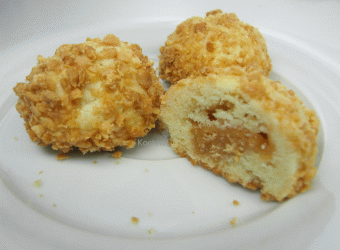 Zubereitung: Erdnüsse hacken, Sahnetoffees in jeweils 6 Stückchen schneiden. Das Mehl mit Backpulver in einer Rührschüssel mischen. Zucker, Vanillinzucker, Ei und Butter hinzufügen und alles gut zu einem glatten Teig verkneten. Teig zu einer Rolle von 60 cm formen und diese in 1 cm dicke Scheiben schneiden. Jeweils 1 Stück Sahnetoffee mit dem Teig umhüllen und zur Kugel formen. Die Kugeln in etwas Milch wenden und den gehackten Erdnüssen wälzen. Kugeln auf das Blech legen und im vorgeheizten Backofen bei 180°C (Umluft 160°C backen. Kochhut wünscht guten Appetit! | |