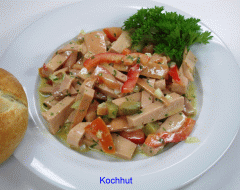 Man kann auch je nach dem eine Tomate darunter schneiden, oder mit einem abgekochtem Ei das Ganze garnieren. Zu diesem Wurstsalat passt am besten ein kühles Bier! Einen guten Appetit: Rezept eingesandt von Herr R. Brun | |