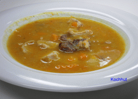 Gemüsesuppe feinZutaten: 250 g Suppenfleisch vom Rind Beinscheiben 1 Zwiebel, klein schneiden |