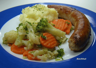 Kartoffeln verrühren. Das Kaisergemüse in einer mikrowellengeeigneten