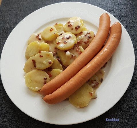 Würstchen mit KartoffelsalatZutaten: 8 Wiener Würstchen kalt oder warm dazureichen Schnittlauchröllchen zum